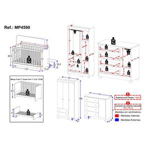 Conteúdo da Embalagem: 1 (um) Berço 1 (um) Guarda-roupa 1 (uma) Cômoda Manual de Montagem Kit Ferragem