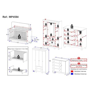 Dimensões do Produto Montado: Berço - Altura: 80,5cm | Largura: 133cm | Profundidade: 77,5cm Guarda-roupa - Altura: 189cm | Largura: 122cm | Profundidade: 41cm Cômoda - Altura: 88cm | Largura: 95cm | Profundidade: 42cm *Você pode consultar as medidas detalhadas na imagem técnica do produto.