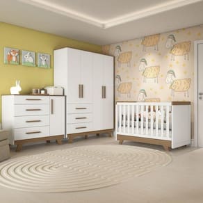 Quarto de Bebê Completo com Cômoda, Berço e Guarda Roupa Kakau Siena Móveis
