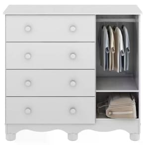 Quarto de Bebê Completo com Cômoda Guarda Roupa com Janela e Berço 100% MDF Uli Móveis Peroba Branco Brilho. Desenvolvidos em 100% MDF e pintura UV atóxica os produtos oferencem muita segurança. O guarda roupa e a cômoda possuem algumas portas com janelas em PETG cristal, corrediças e cabideiro metálico. Também acompanha 2 modelos de rodapés (1 reto e 1 torneado - usinado), para que você escolha qual utilizar. E o berço também conta com muitos benefícios e qualidades. Ele possui estrado móvel com 3 regulagens de altura, 4 rodízios sendo 2 com travas, grades fixa e claro, registro no INMETRO (001950/2019). O colchão indicado é de 70 x 130 (largura x comprimento). Tudo para que você e sua família tenham conforto e tranquilidade com a maior segurança. Medida dos produtos (cm): Berço: 98,60 x 132,40 x 76 (AxLxP) Cômoda: 88 x 95,30 x 42 (AxLxP) Guarda Roupa: 188,50 x 91,90 x 41,50 (AxLxP) Ean: 7908167251798