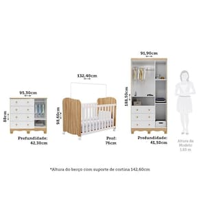 Medida de Cada Item: Guarda-roupa: 188,50 x 91,90 x 41,50 | Cômoda: 88 x 95,30 x 42,30 | Berço: 98,60 x 132,40 x 76 (A x L x P - cm)