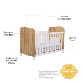 Informações Complementares: Berço com bordas arredondadas e 4 rodízios, sendo 2 com travas. Não possui opção de montagem como mini-cama e não acompanha colchão.