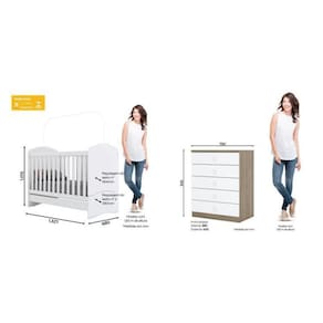 Esse lindo Quarto de bebê Completo é tudo o que você pediu em um único ambiente. Toda essa combinação foi pensada para que este conjunto permaneça em sua casa por muitos anos acompanhando o crescimento de seus pequenos. O Berço Mini Cama traz todo o conforto e a segurança que seu bebê precisa para dormir tranquilo. Produzido em MDP, a sustentação possui revestimento interno e externo com pintura UV, esse revestimento assegura durabilidade ao móvel. Além de suas funcionalidades como, estrado com regulagem de altura, mosquiteiro, o berço se transforma em Sofá-cama e Mini-cama. A cômoda possui 05 gavetas com corrediças metálicas, que permite um deslize mais seguro e suave. Possui Rodízio: Acompanha Colchão: Não Altura do Conjunto: 101.5 cm Ambiente: Quarto de Bebê Ambiente Principal: Quarto de Bebê Cor: Rústico/Branco Estrado com Regulagem de Altura: Sim Informação Complementar: 1x Berço Mini Cama Bala de Menta Rústico/BrancoLargura: 132,7 cmAltura: 101,5 cmPeso: 30 kgProfundidade: 68 cmNecessita Montagem: Sim1x Cômoda Infantil 5 Gavetas Lápis de Cor Rústico/BrancoLargura: 75Altura: 93Peso: 28Profundidade: 40Necessita Montagem: Sim Permite a Utilização de Cama Auxiliar: Não Pintura Atóxica: Sim Possui Portas: Não Tamanho: