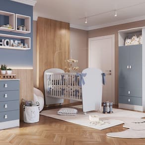 Quarto de bebê completo Fofura foi carinhosamente projetado e desenvolvido para ser prático a toda sua família. Contém um guarda roupa com 2 portas com cantoneira, uma cômoda com 4 gavetas e um berço com rodízios que proporciona maior mobilidade do mesmo. Todos os produtos são fabricados em MDP 15mm, garantindo maior resistência aos produtos. Gavetas com corrediças telescópicas que permitem um deslize mais seguro e suave. Que tal trazer um pouco da decoração portugu: Quarto de bebê completo Fofura foi carinhosamente projetado e desenvolvido para ser prático a toda sua família. Contém um guarda roupa com 2 portas com cantoneira, uma cômoda com 4 gavetas e um berço com rodízios que proporciona maior mobilidade do mesmo. Acompanha Colchão: Não Altura do Conjunto: 92 cm Ambiente Principal: Quarto de Bebê Armário de Cozinha Portuguesa Espresso Móveis: Quarto de Bebê Completo Fofura com Guarda Roupa 2 Portas, Cômoda e Berço Espresso Móveis codigo_ean: 7908388150696 Complexidade da Montagem: Baixa: pode ser montado por uma pessoa sozinha Cor: Branco/Azul Estrado com Regulagem de Altura: Sim Informação Complementar: 1x Guarda Roupa de Bebê 2 Portas 2 Gavetas com Cantoneira Baby Branco/Azul Largura: 89 cm Altura: 186 cm Peso: 50,20 kg Profundidade: 40 cm Necessita Montagem: Sim