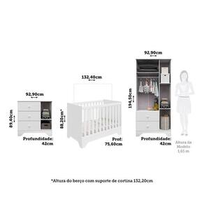 São produtos desenvolvidos em 100% MDF, acabamento em pintura UV atóxica e bordas arredondadas, oferecendo mais segurança para toda família. As gavetas possuem corrediças telescópicas que garantem o deslize suave e silencioso. O berço é certificado peço INMETRO e permite o uso como minicama ou minisofá.