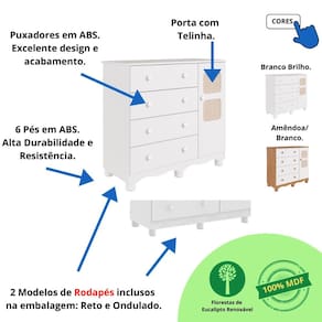 R - É uma Cômoda infantil Uli Telinha com 4 gavetas e 1 porta.