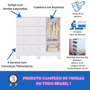 -Quantidade de Gavetas: 04 Gavetas(Peso suportado 4Kg);