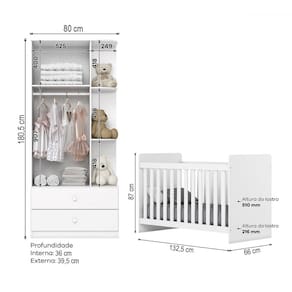 - Acompanha: 1 Guarda Roupa + 1 Berço + Kit Ferragens + Manual de Montagem