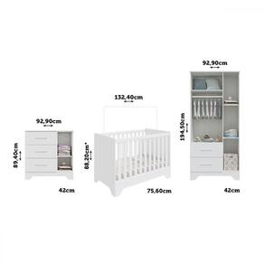 - Acompanha: 1 Guarda-Roupa, 1 Cômoda, 1 Berço, Kit Ferragens e Manual de Montagem
