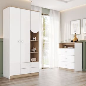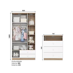 - Design Moderno e Cor amadeirada exclusiva; Acabamento da Gaveta: Pintura UV Acabamento da Porta: Pintura UV Acompanha Manual de Instalação: Sim Altura do Conjunto: 180,5 cm Ambiente Principal: Quarto de Bebê Certificado: 016 817/2024 Certificado INMETRO (código): 016 817/2024 codigo_ean: 7900288195708 Complexidade da Montagem: Alta: deve ser montado por um montador especializado Cor: Branco/Jequitibá Cor do Produto: Branco/Jequitibá Cor Interna: Branco Escala de Brilho: Brilhante Escala de Brilho da Gaveta: Brilhante Escala de Brilho da Porta: Brilhante Escala de Brilho da Prateleira: Fosco Estampado: Não Informações Complementares: É importante fixar a cômoda e o Guarda Roupas na parede para evitar tombamento, peças para fixação estão inclusas. Largura do Conjunto: 167 cm Linha ou Coleção: Magia Manual de Montagem e Instalação: https://product-hub-prd.madeiramadeira.com.br/317762359/documents/f2ff6457-7199-4da0-ae17-0ae8fe576b582985670307517494811055913.pdf Marca: Espresso Móveis Material da Gaveta: MDF/MDP Material da Porta: MDP Material da Prateleira: MDP Material do Estrado: MDF Material do Fundo: MDF Material do Puxador da Gaveta: ABS Material do Puxador da Porta: ABS Material Principal: MDF/MDP Medida de Cada Item: Cômoda: (AxLxP) 94,5cm X 75cm X 41cm, Guarda-Roupas: (AxLxP) 180,5cm X 92cm X 41cm modular: Não Necessita Montagem: Sim Origem do Produto: Nacional Permite a Utilização de Cama Auxiliar: Não Peso: Cômoda: 26kg Guarda-Roupas: 52kg Peso de Cada Item: Cômoda: 26kg Guarda-Roupas: 52kg Pintura Atóxica: Sim Porta Janelada: Não Possui Capitonê: Não Possui Certificado: Sim Possui Espelhos: Não Possui Gavetas: Sim Possui Portas: Sim Possui Prateleiras: Sim Possui Rodízio: Não Possui Trocador: Não Profundidade do Conjunto: 41 cm Quantidade de Gavetas: 05 Quantidade de Portas: 03 Quantidade de Prateleiras: 06 Recomendações de Uso, Manutenção e Limpeza: Para limpeza de seu móvel, use uma flanela seca ou umedecida. Não utilize produtos químicos que possam danificar o produto. Sistema de Montagem: Parafusos e Cavilhas Tipo de Corrediça da Gaveta: Metálica Telescópica Tipo de Dobradiça/Corrediça da Porta: Metálica Tipo de Guarda-Roupa: Bebê Tipo de Porta: Bater Tipo de Puxador da Gaveta: Externo Tipo de Puxador da Porta: Externo