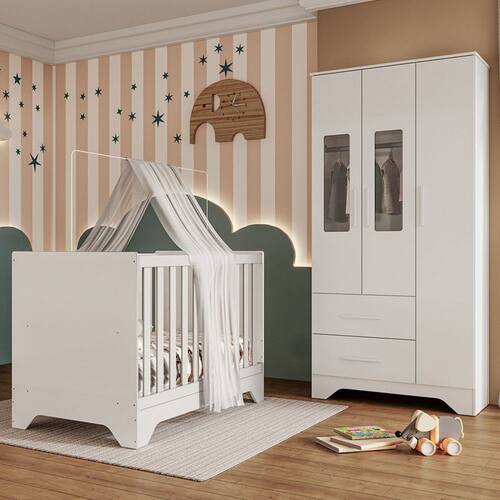 - Acompanha: 1 Guarda-Roupa, 1 Berço, Kit Ferragens e Manual de Montagem