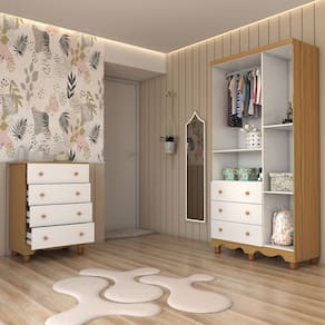 - Acompanha: 1 Guarda-Roupa, 1 Cômoda, Manual de Montagem e Kit Ferragens