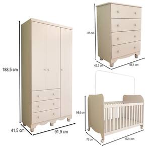 - Acompanha: 1 Guarda-Roupa, 1 Cômoda, 1 Berço, Manual de Montagem e Kit Ferragens