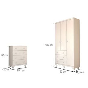 - Acompanha: 1 Guarda-Roupa, 1 Cômoda, Manual de Montagem e Kit Ferragens