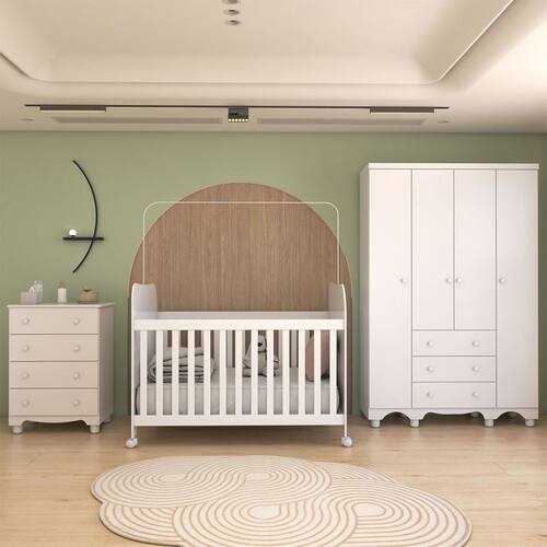- Acompanha: 1 Guarda-Roupa, 1 Cômoda, 1 Berço, Manual de Montagem e Kit Ferragens