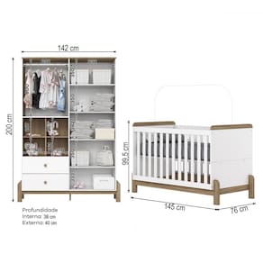 - Acompanha: 1 Berço + Guarda Roupa + Kit Ferragens + Manual de Montagem
