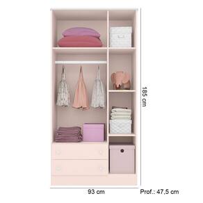 Dimensões Guarda-Roupa: Altura: 185 cm Largura: 93 cm Profundidade: 47,5 cm