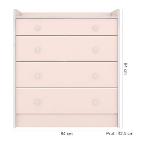 Dimensões Cômoda: Altura: 94 cm Largura: 84 cm Profundidade: 42,5 cm