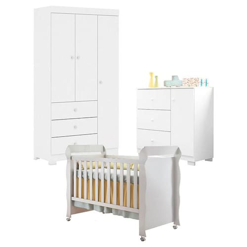 Quarto de Bebê Duda 3 Portas com Berço Americano Mirelle Branco Brilho – Phoenix Baby