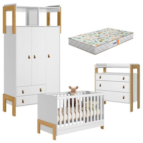 Quarto de Bebê Fantasia Branco Acetinado com Colchão Gazin – Qmovi