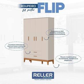 Guarda Roupa Infantil Flip 4 Portas Areia Acetinado - Reller