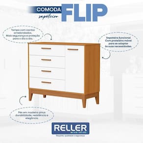 Cômoda Sapateira Infantil Flip Branco Acetinado Savana - Reller