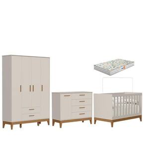 Quarto de Bebê Flip Guarda Roupa 4P Areia Acetinado com Colchão Gazin - Reller