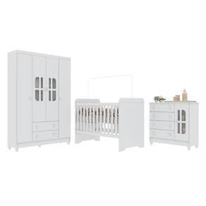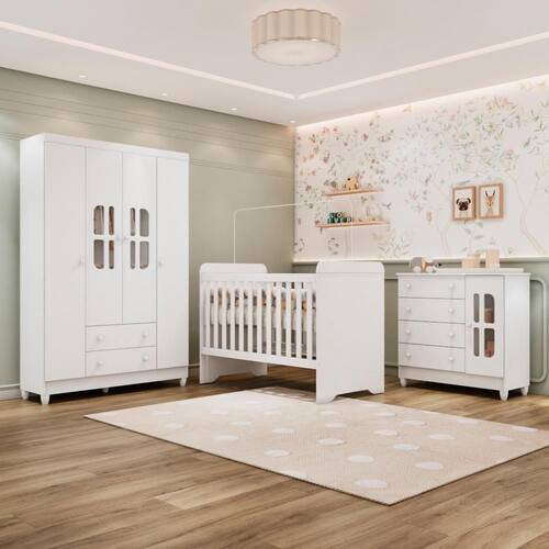 O conjunto perfeito para combinar com a decoração que você escolheu para acolher o seu baby. Produzidos em 100% MDF de alta resistência mecânica, nossos móveis são feitos para durar. A cômoda fraldário tem um sistema anti-tombamento e o berço 3 em 1 acompanha o crescimento do seu filho se transformando em mini-cama ou mini-sofá. Disponíveis nas cores Branco e Branco com Bétula.
