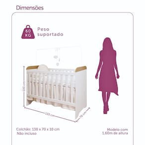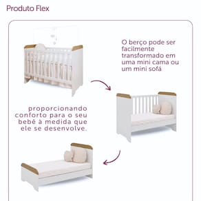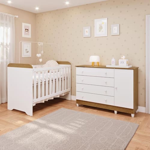 Duas peças que se combinam e atraem sempre os olhares onde ficam. O berço 3 em 1 que garante aquele sono gostoso e seguro do seu filho até depois que ele cresce e vai para sua caminha. A cômoda fraldário nunca te deixa na mão e oferece todo o espaço necessário para você trocar o seu baby. Estes produtos se encontram disponíveis nas cores Branco Brilho e Branco Fosco com Amadeirado.