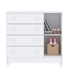 O dormitório perfeito para combinar com a decoração que você escolheu para acolher o seu baby. O guarda-roupa em que você tem ainda mais espaço para acomodar os pertences do seu bebê, de forma que as roupas não fiquem amassadas ou apertadas. Com cabideiro, prateleira e gavetas, as mamães podem organizar tudo de forma prática e funcional. Peça fabricada em MDP MDF de alta resistência mecânica, a cômoda é uma peça chave na organização de objetos, roupas e acessórios do bebê. O móvel tem um sistema de trava anti-tombamento e corrediça metálica nas gavetas. Este produto se encontra disponível nas cores Branco Brilho e Branco Amadeirado.