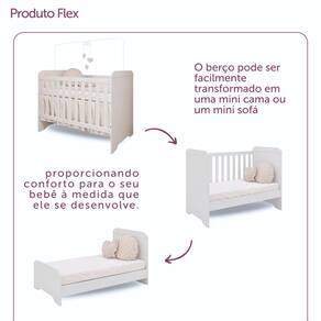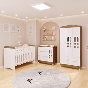 Três peças básicas para você começar a montar o quarto do seu bebê. O guarda-roupa traz toda praticidade e a divisão de espaço interna ideal para você organizar os pertences da criança. A cômoda fraldário tem um sistema exclusivo de travas anti-tombamento para garantir toda segurança na hora de trocar o seu baby. E o berço 3 em 1 pode ser aproveitado também como mini-cama e mini-sofazinho. Disponíveis nas cores Branco e Branco com Bétula.