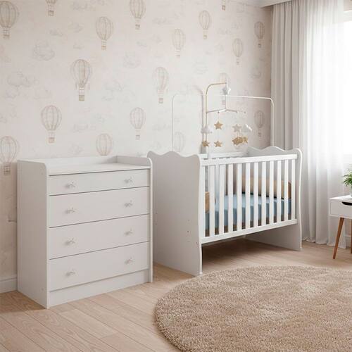 A Comoda com 4 Gavetas e Trocador Doce Sonho e o produto ideal para quem precisa de funcionalidade em pouco espaco.