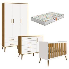 Quarto de Bebê Isis 3 Portas Branco Acetinado Savana com Colchão Gazin - Reller