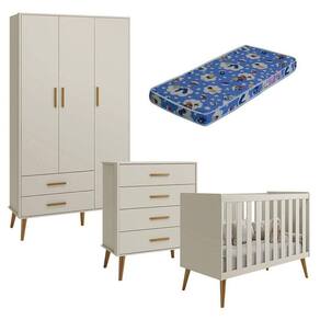 Quarto de Bebê Isis 3 Portas com Gaveteiro Areia Acetinado e Colchão Ortobom - Reller