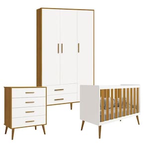 Quarto de Bebê Isis 3 Portas com Gaveteiro Branco Acetinado Savana - Reller