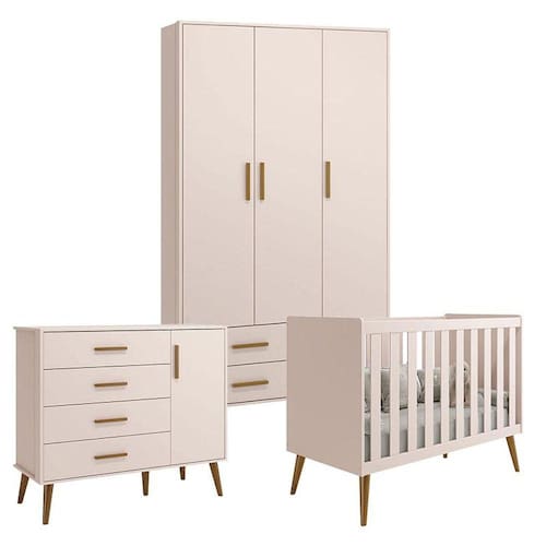 Quarto de Bebê Isis 3 Portas Rosa Acetinado - Reller