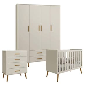 Quarto de Bebê Isis 4 Portas com Gaveteiro Areia Acetinado - Reller