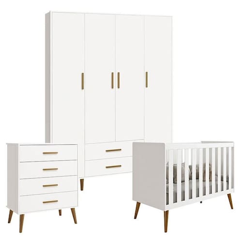 Quarto de Bebê Isis 4 Portas com Gaveteiro Branco Acetinado - Reller