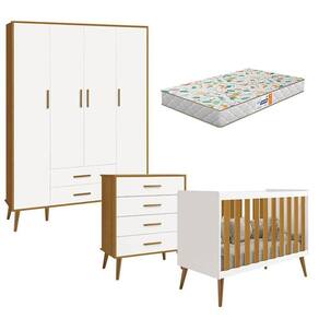 Quarto de Bebê Isis 4 Portas com Gaveteiro Branco Acetinado Savana com Colchão Gazin - Reller