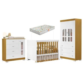 Quarto de Bebê New Katatau Branco Acetinado Savana com Colchão Gazin– Reller