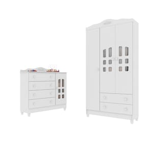 O dormitório perfeito para combinar com a decoração que você escolheu para acolher o seu baby. O guarda-roupa em que você tem ainda mais espaço para acomodar os pertences do seu bebê, de forma que as roupas não fiquem amassadas ou apertadas. Com cabideiro, prateleira e gavetas, as mamães podem organizar tudo de forma prática e funcional. Peça fabricada em 100% MDF de alta resistência mecânica, a cômoda é uma peça chave na organização de objetos, roupas e acessórios do bebê. O móvel tem um sistema de trava anti-tombamento e corrediça telescópicas nas gavetas. Este produto se encontra disponível na cor Branca.