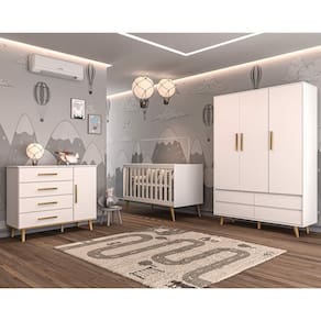 A Carolina Baby tem toda a preocupação em combinar design com qualidade e segurança. Esse conjunto no estilo retrô é produzido em MDP e MDF de alta resistência mecânica, com os pés palitos de madeira maciça. O berço 3 em 1 serve também como mini-cama e mini-sofá, a cômoda fraldário vem com travas anti-tombamento, e o guarda-roupa 3 portas tem o seu espaço interno dividido com cabideiro, prateleiras e gavetas. Estes produtos se encontram disponíveis nas cores Branco Fosco, Cinza Fosco e Rosa Fosco.