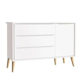 Cômoda Infantil Theo 1 Porta Branco Acetinado com Pés Madeira Natural Reller
