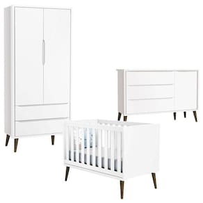 O quarto de bebê que você procura com qualidade e bom preço você encontra aqui! Apresentamos mais essa linda opção de Quarto de Bebê Theo com Guarda Roupa Infantil 2 Portas, Cômoda Infantil com Porta e Berço Branco Acetinado da Reller, móveis com estilo retro com amplo espaço e ótima repartição interna, possui tudo o que você precisa para deixar as roupas e acessórios do bebê sempre bem organizados com total conforto e praticidade no seu dia a dia, confira!