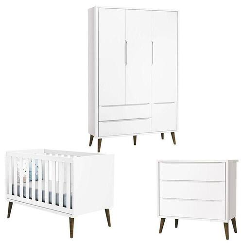 Quarto de Bebê Theo 3 Portas Branco Acetinado com Pés Amadeirado - Reller