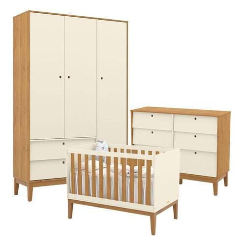 Quarto de Bebe Unique 3 Portas com Cômoda 6 Gavetas Off White Freijó Eco Wood - Matic