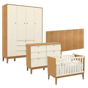 Quarto de Bebê Unique 4 Portas com Cômoda 6 Gavetas e Painel Farm Freijó Off White Eco Wood - Matic