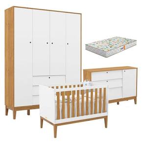 Quarto de Bebe Unique 4 Portas com Cômoda Sapateira Branco Soft Freijó Eco Wood e Colchão Gazin - Matic