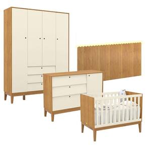 Quarto de Bebê Unique 4 Portas com Cômoda Sapateira e Painel Farm com Led Freijó Off White Eco Wood - Matic