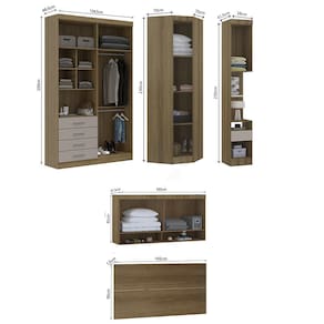 Informacoes Complementares: Dobradicas reforcadas. Guarda Roupa de Canto necessita de recuo para montagem. Consulte o manual de montagem. Alguns modulos podem ser montados com abertura para o lado Direito ou Esquerdo. Consulte o manual de montagem. Indicado para uso com Cama/Conjunto Box Casal/Queen -165cm-. Cama/Box nao acompanha o ambiente, a imagem e meramente ilustrativa.